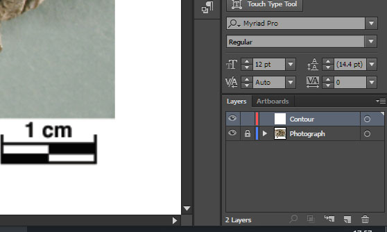 Now it is a good time to make yourself familiar with a concept of Layers in Illustrator. We are going to place each part of the drawing on a separate Layer. On Layers Panel (Window/Layers) you see that photograph is on Layer 1 right now, but to make everything clear we are going to rename it "Photograph" or the like. Now you should lock this layer (by clicking on the second column next to our selected layer) to prevent moving photograph, and make a new layer, named e.g., "Contour," where we are going to draw the contour of our tablet, which I am going to explain in the next post.