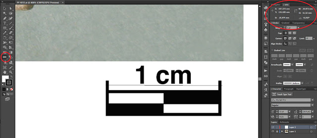 From the start you should follow the set scale in your drawing, that is, you should decide how the dimensions of your tablet are scaled on printout/finished drawing. Often people follow 1:1.5 scale (1 cm on tablet = 1.5 cm on printout), here we follow 1:2 scale (1 cm of the tablet = 2 cm on printout). To make your drawing follow the set scale, you have to scale up (or down) your source photograph. In order to that, you have to measure how big is centimeter on your photograph with Measure Tool